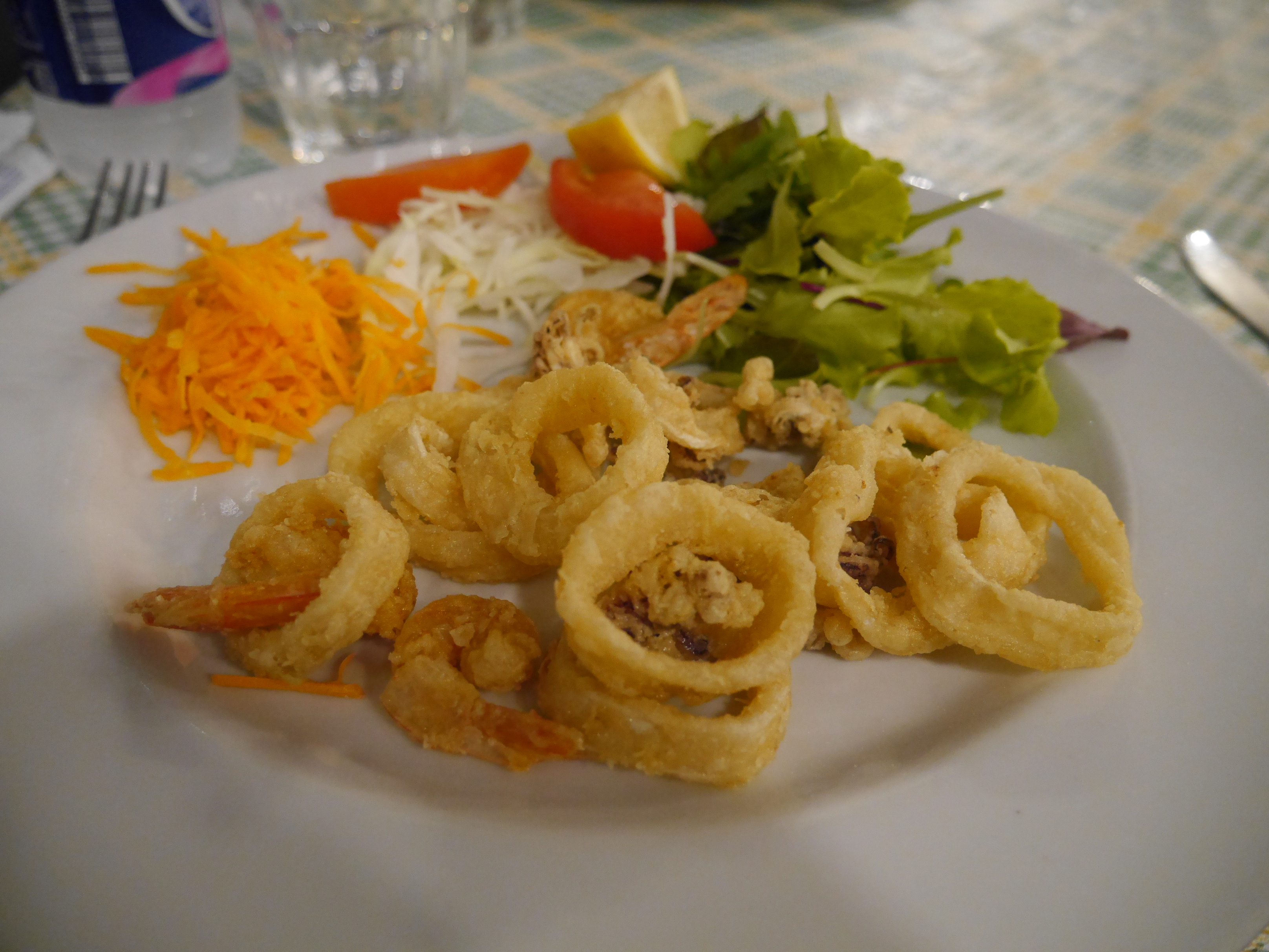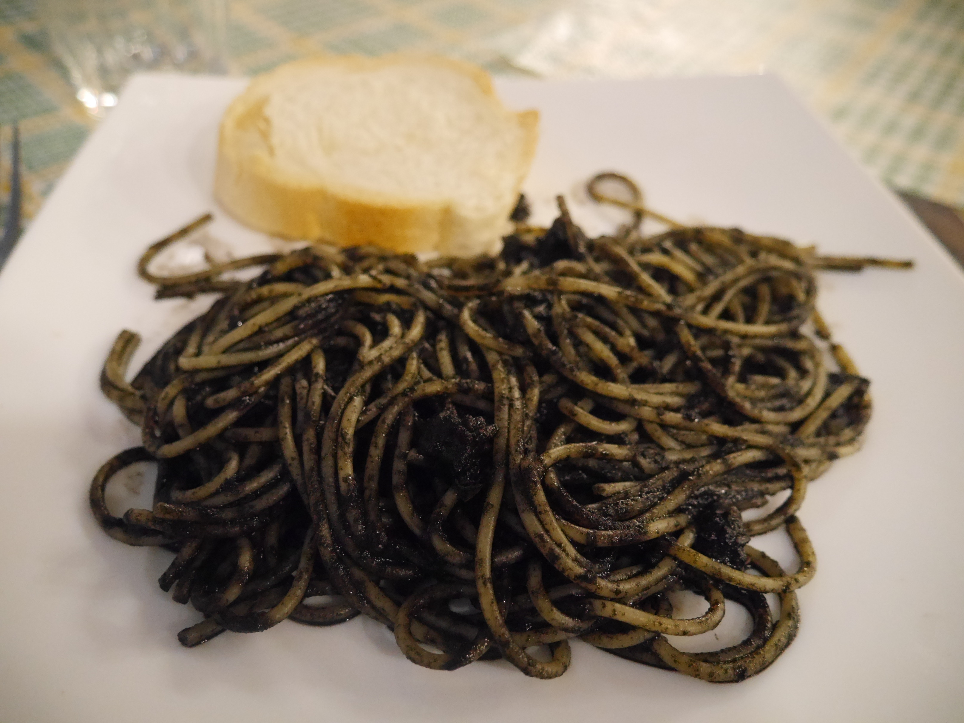 イカスミパスタとシーフードのフリッターでした。